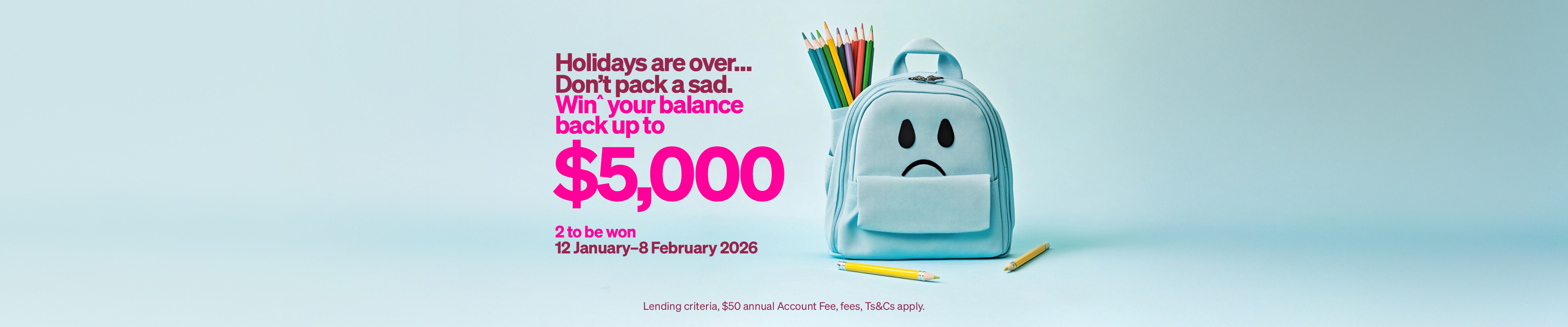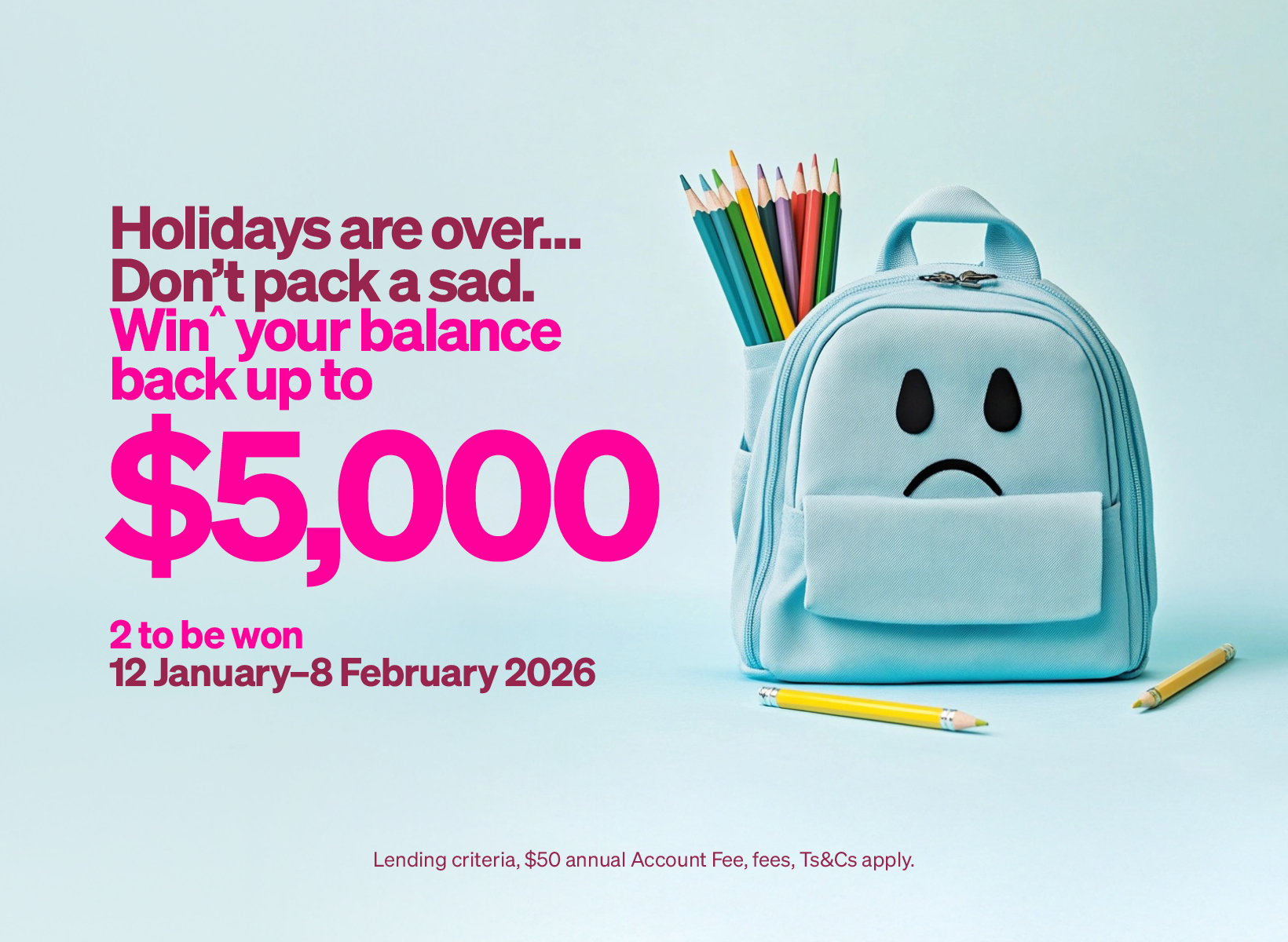 Shop with your Q Card or Q Mastercard and every purchase between Monday 12 January – Sunday 8 February 2026 is a chance to win^ your balance back up to $5,000! There are 2 to be won.