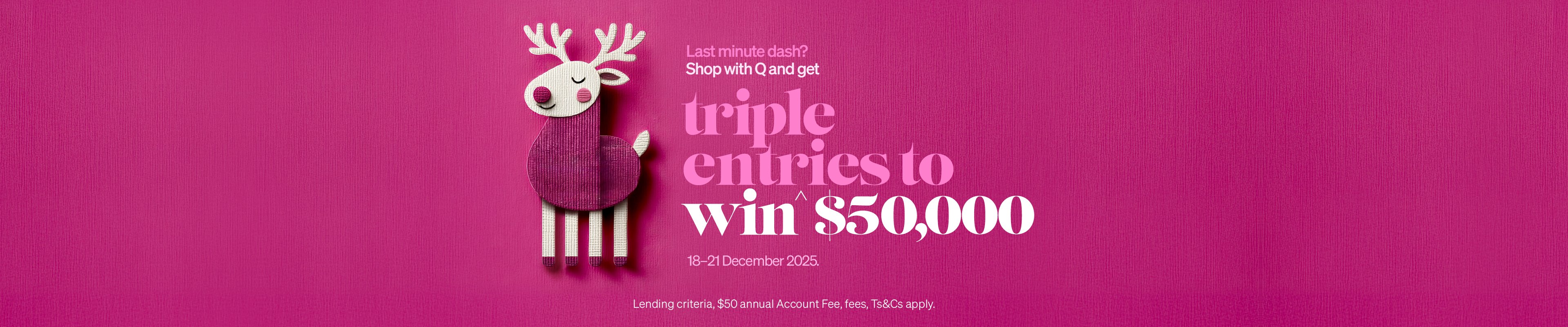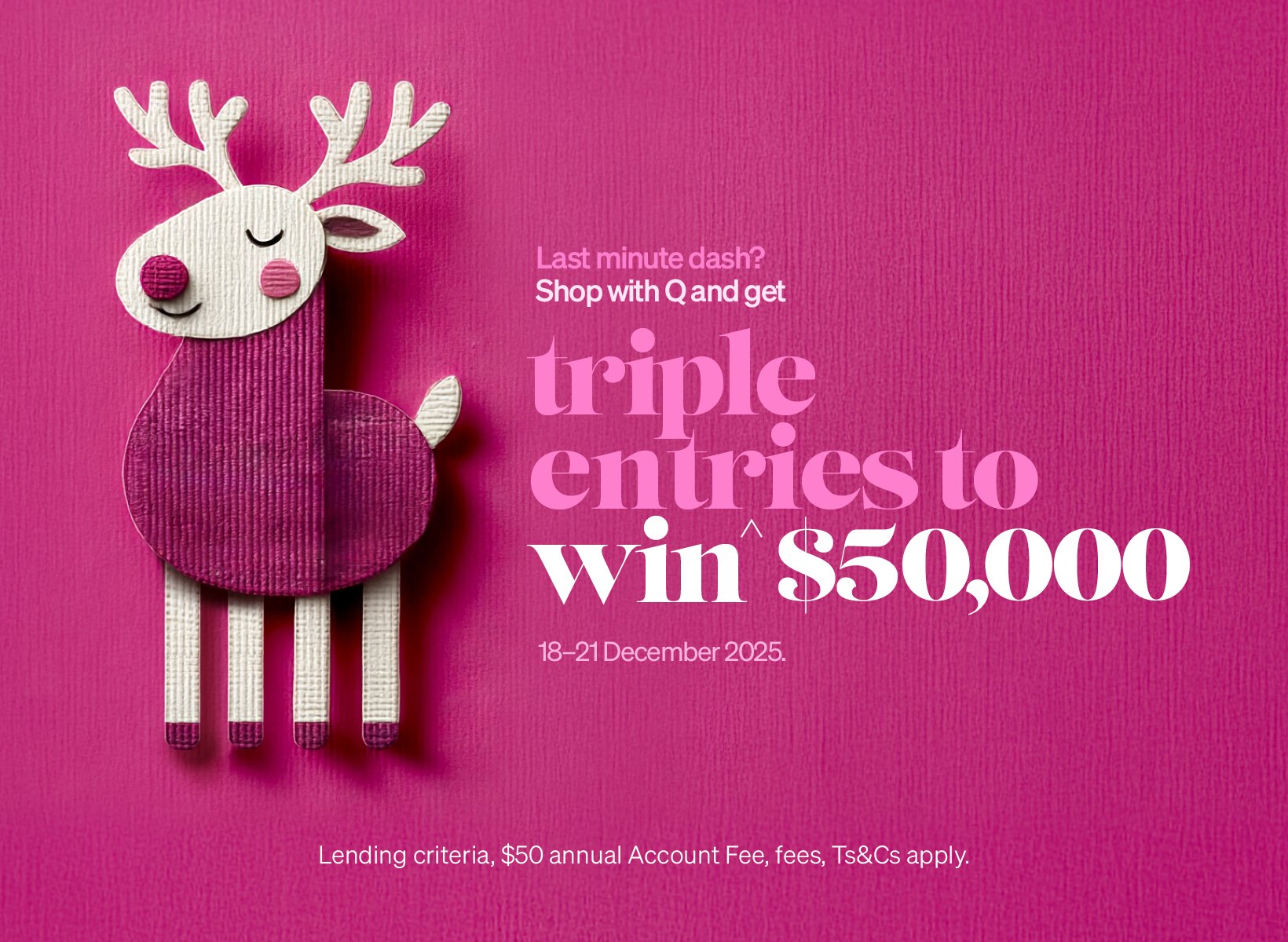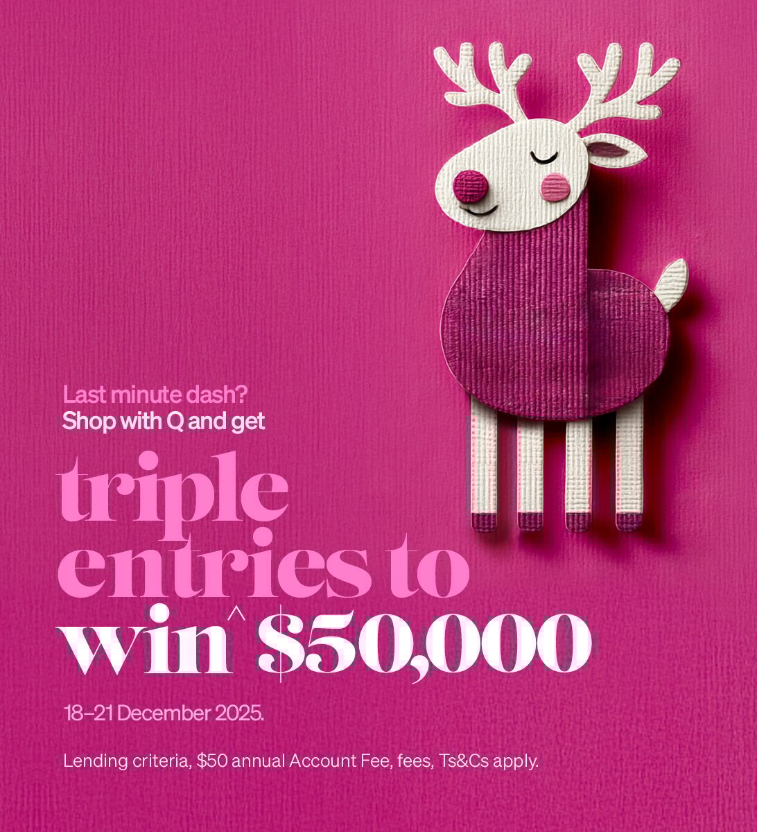 The countdown is on. So, every purchase with your Q Card or Q Mastercard between 18-21 December 2025, in-store or online, gives you THREE entries in the draw to win^ $50,000.