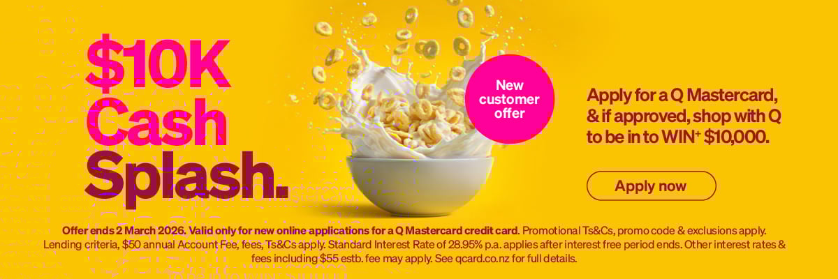 Apply for a Q Mastercard credit card online using the promo code SPLASH between 2 February and 2 March 2026, and if approved, you’ll be in to win+ $10,000 cash. Why wait?