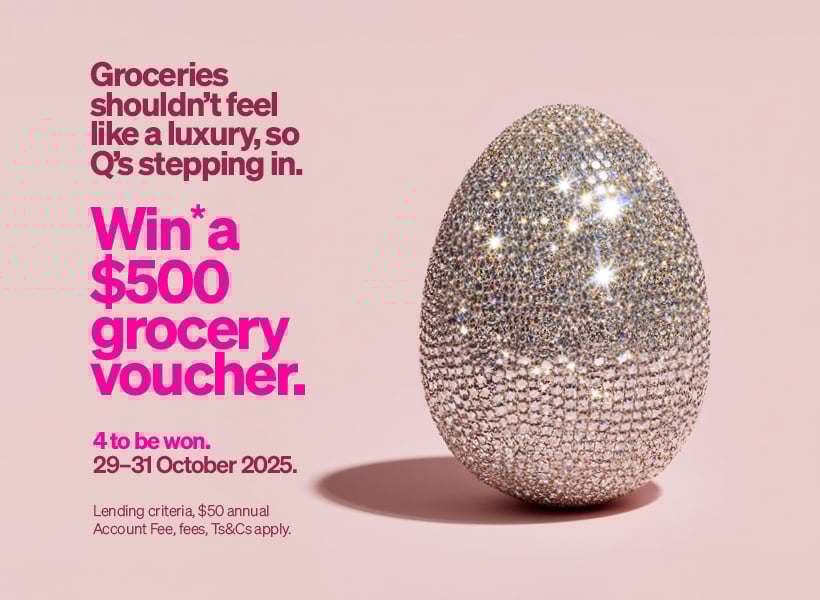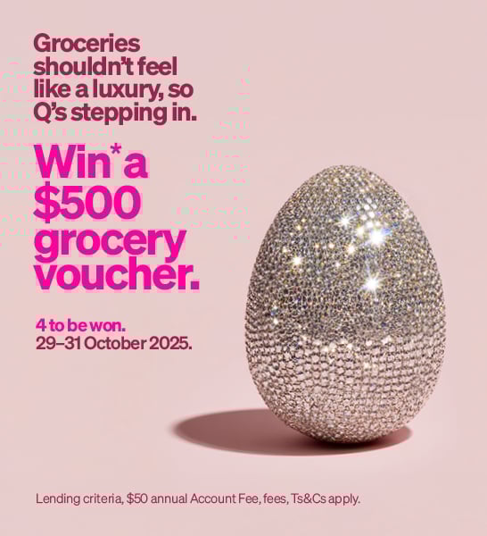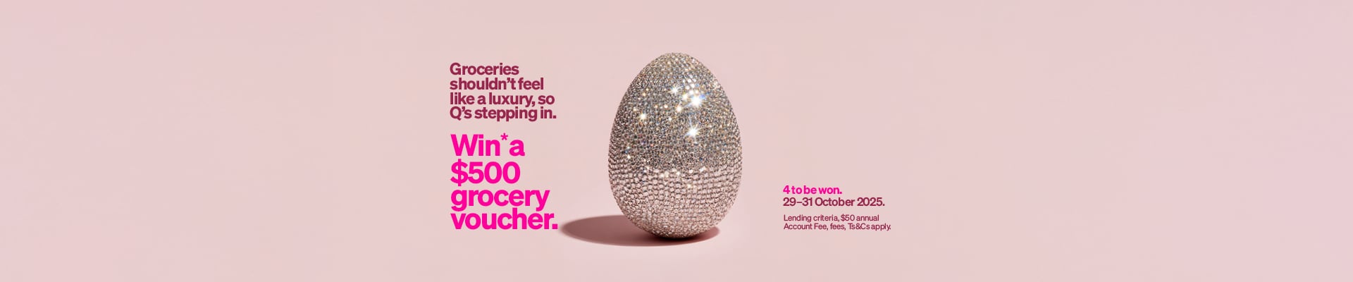 Use your Q Card or Q Mastercard between Wednesday 29 to Friday 31 October 2025 and you could be in to win* 1 of 4, $500 Grocery Vouchers.
