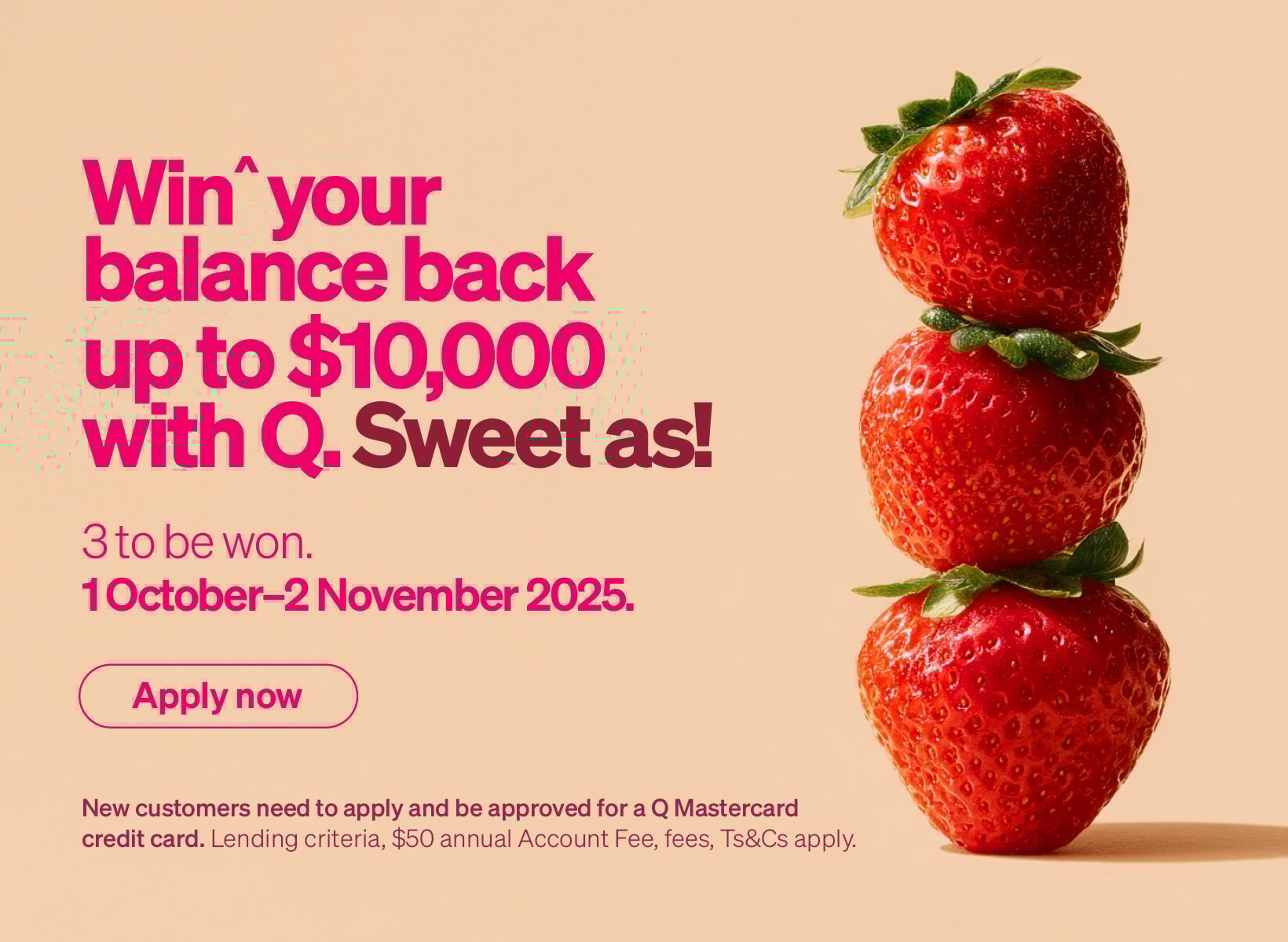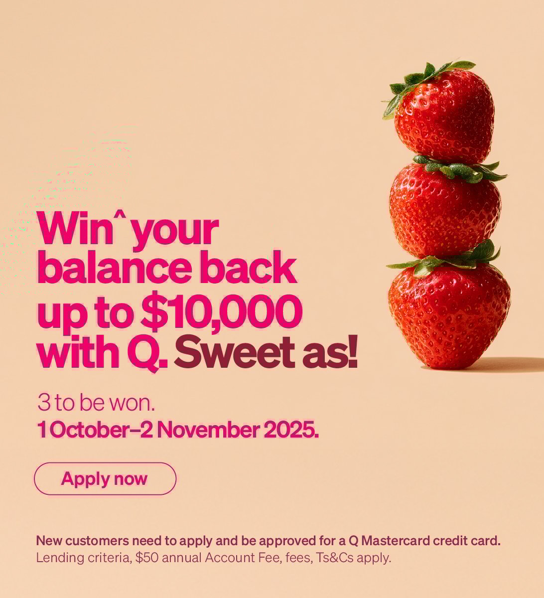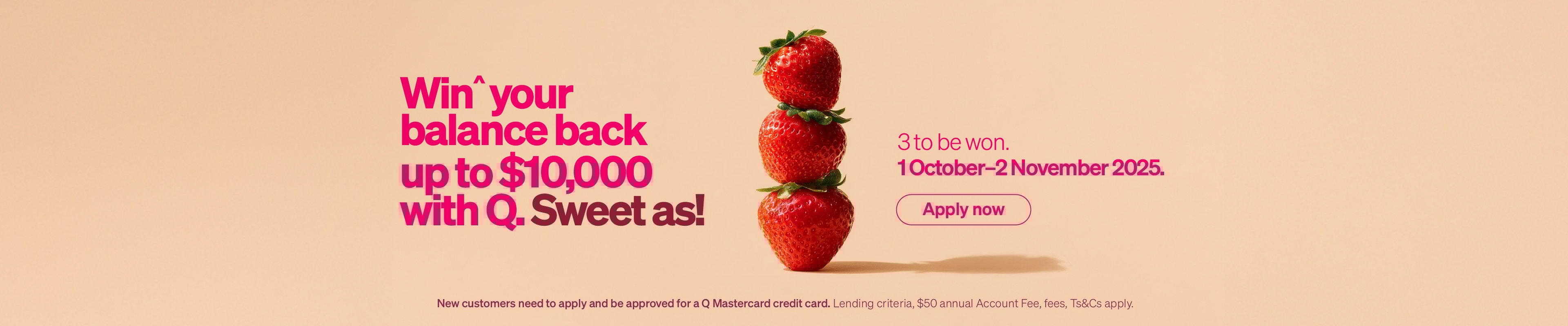 Every time you shop with Q Mastercard or Q card between 1 October – 2 November 2025, is a chance to win^ your balance back up to $10,000! There are 3 prizes to be won.